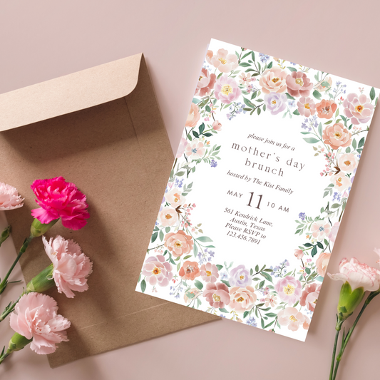 Watercolor Pink Floral Mother's Day Invitation