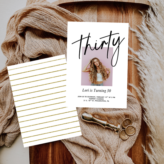 Black Bow Tying Up My Thirties Editable Birthday Invitation