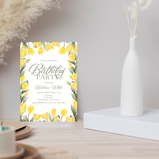 Elegant Yellow Tulips Birthday Invitation | Digital Download