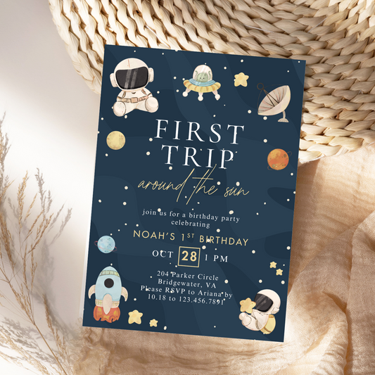 Modern First Trip Around the Sun Birthday Invitation
