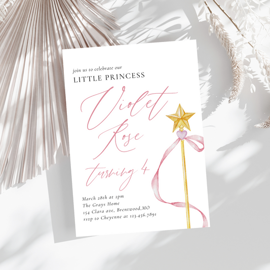 Modern Pink Little Princess Birthday Invitation Template