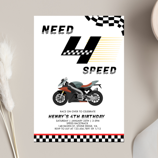 Need 4 Speed Race Car 4th Birthday Invitation