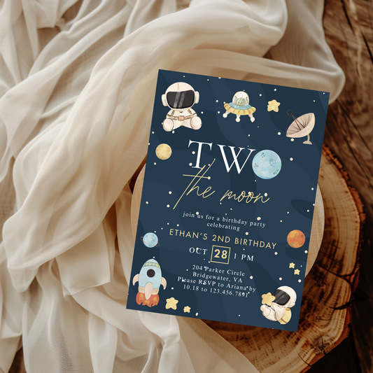 Modern Two the Moon 2nd Birthday Invitation