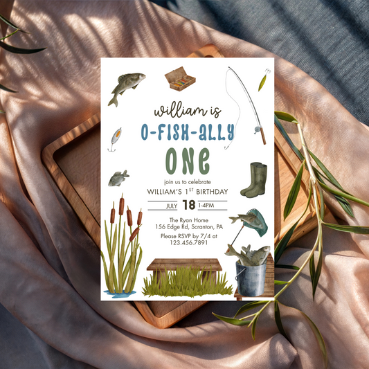 O-Fish-Ally One Fishing First Birthday Invitation