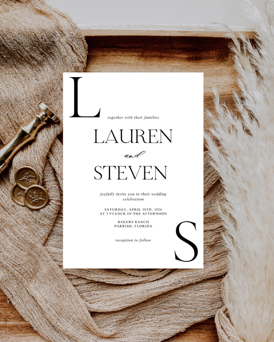 LAUREN Black & White Wedding Invitation Suite Bundle | Elegant Digital Download