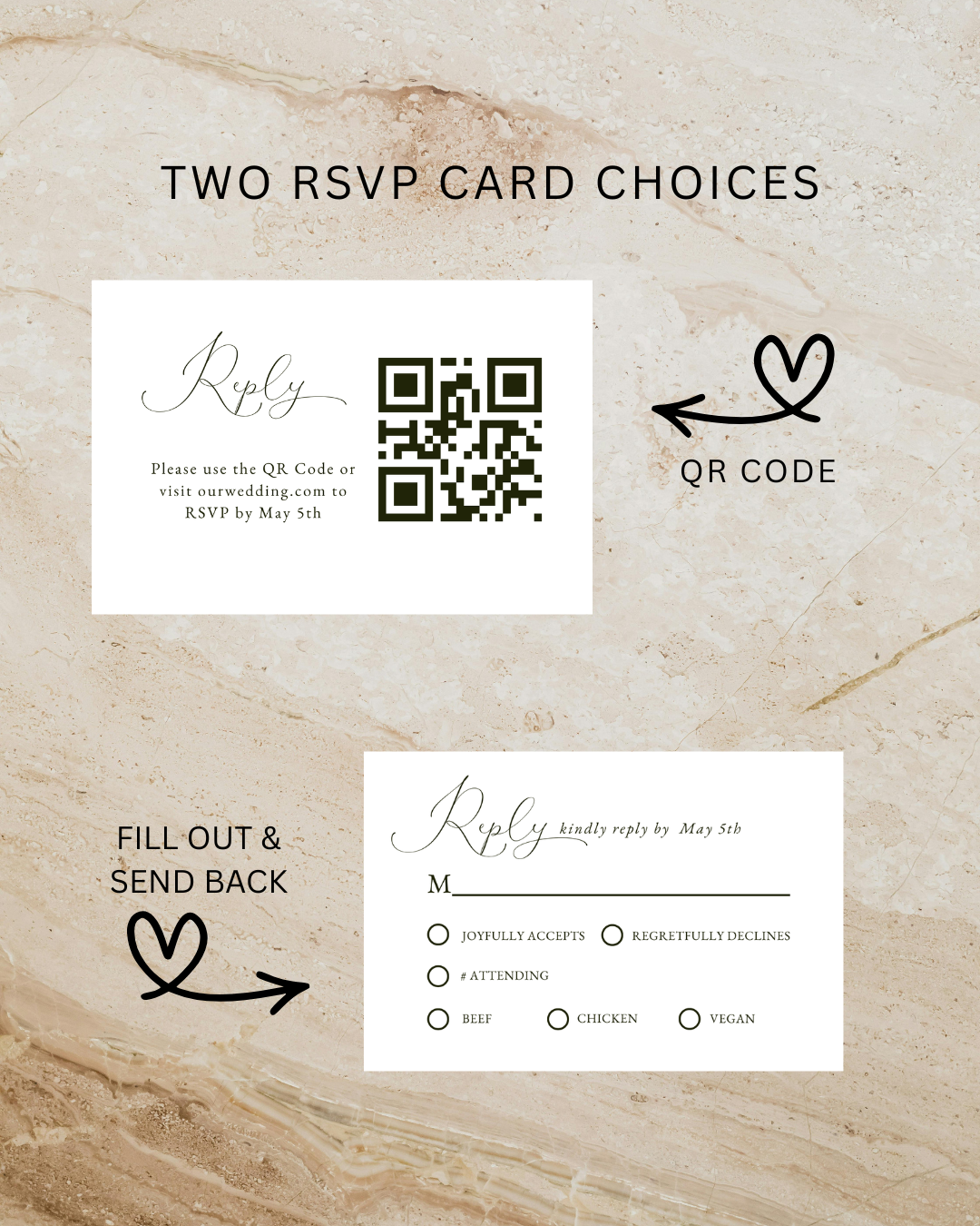 ✔ RSVP Card (3.5" X 5") – Includes a QR code for easy online RSVPs.