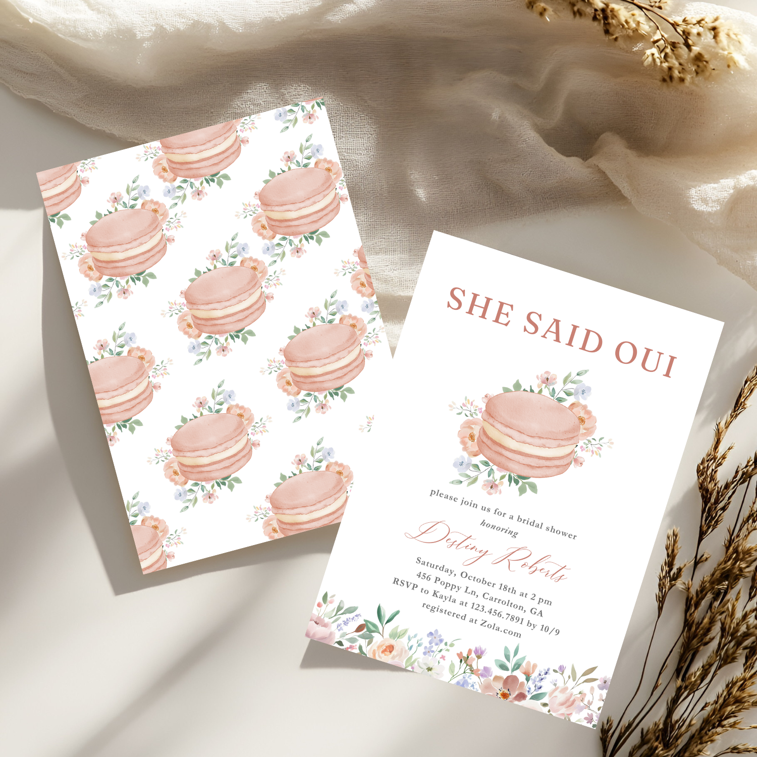 Invite guests to a charming French-themed bridal shower with this elegant pink macaron bridal shower invitation. Featuring a delicate watercolor macaron, soft floral accents, and coral pink French magazine serif, this Parisian-inspired invitation is perfect for a sophisticated and stylish celebration. Ideal for a floral pink shower, or French café-themed event, this design exudes timeless elegance. Customize the text easily and download instantly for digital sharing or high-quality printing.